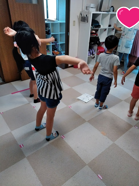 基本的な動きを教えてから、曲を流して踊りました。