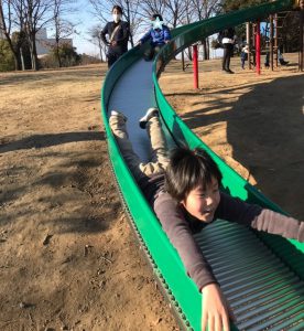 ロングローラー滑り台やアスレチック遊具が大人気でした。