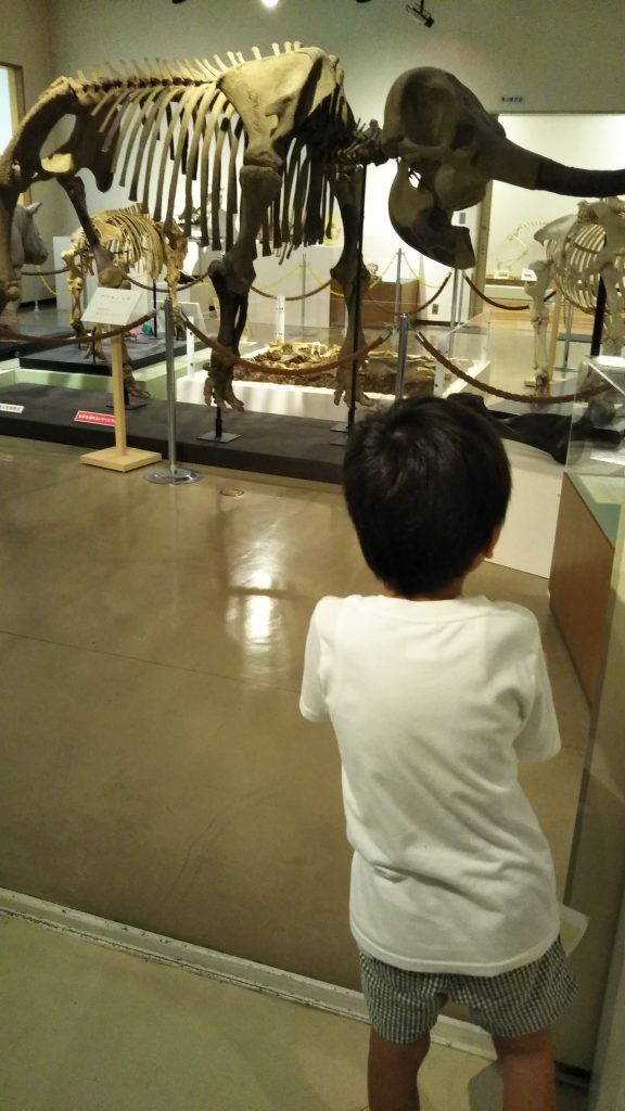 とても迫力があり、子どもたちは大喜び。 その後中の見学をしました。 化石や動物の標本がたくさんあり、 帰りには化石の入った石をもらえました。