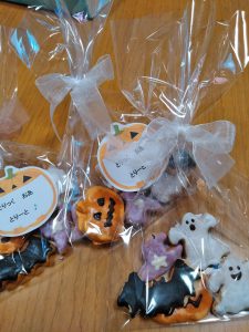 「トリック オア トリート」と言えたら、先生たちからお菓子がもらえます。